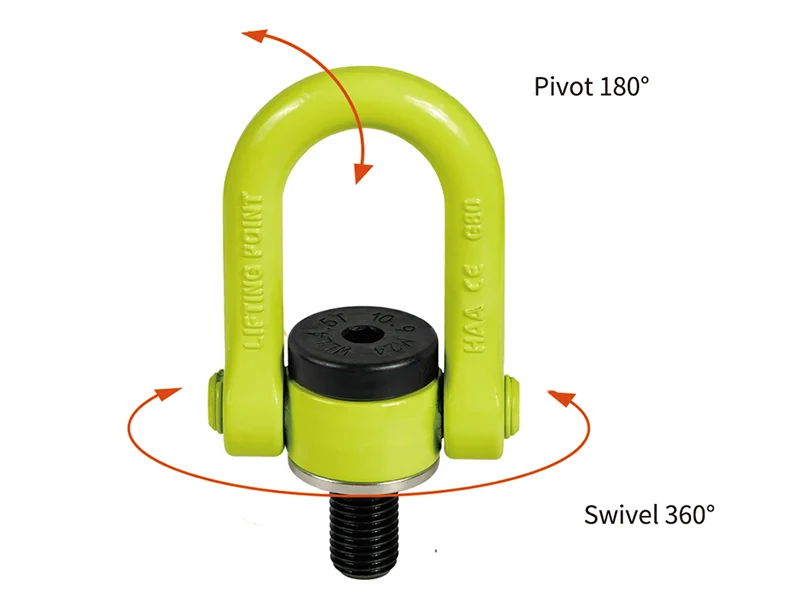 تم تصميمها لعمليات الرفع الشاقة، ولها قدرة تحمل تتراوح بين 0.5 إلى 50 طن. كما تتميز بزاوية دوران 360 درجة ودوران محوري 180 درجة، كما أنها تساعد في تحقي عمليات مناولة آمنة ودقيقة للحمولة، مما يقلل من القيود المفروضة على زوايا الرفع. ويضمن هيكلها المصنوع من سبائك الفولاذ المطروق قوة ومتانة فائقة، مما يجعلها خياراً مثالياً للبيئات الصعبة مثل تطبيقات البناء وصناعة النفط والغاز.